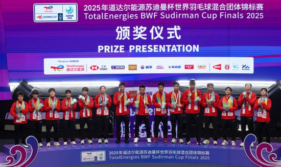 厦门5月4日电(记者丁文娴、付敏)4日,厦门凤凰体育馆,正在现场跨越一万名不雅众的呐喊声中,中国队3!1击败强敌韩国队,持续第四次、汗青第14次夺得苏迪曼杯世界羽毛球夹杂集体锦标赛冠军。 5月4日,获得冠军的中国队正在颁典礼上。。