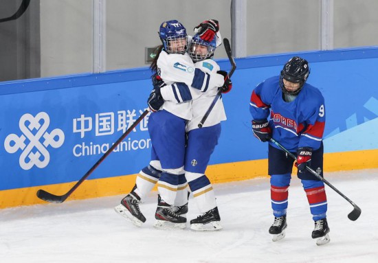 2月9日电(记者王浩明、胡佳丽)亚冬会冰球角逐9日进行了6场抢夺,正在女子B组角逐中,哈萨克斯坦队通过加时赛1!0击败韩国队,两边联袂晋级四强。 2月9日,哈萨克斯坦队选手亚历山德拉·舍加伊(左二)正在进球后取队友庆贺。。