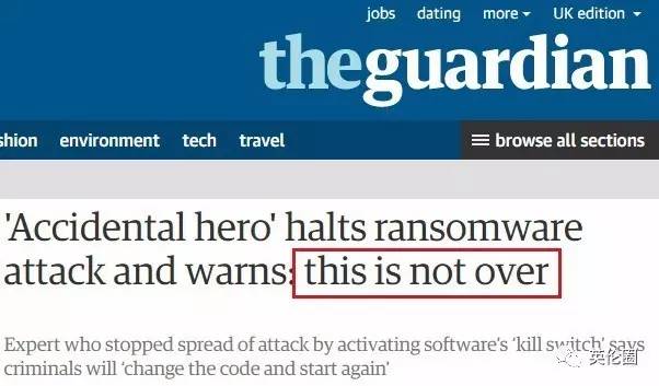和某些消息平台热炒MalwareTech“了全世界”的梗分歧,英国《卫报》和《英国电讯报》都正在题目里明白告诉大师,小哥本人都曾经做出:“这事没完!”▼?。