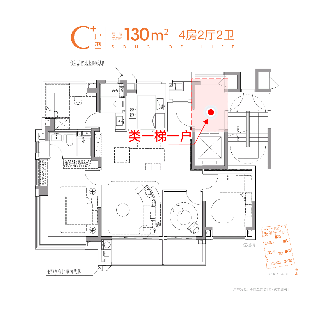 值得一提的是,该户型双卫均带飘窗,无效提拔了空间实得率;别的,同级户型中一般都是1个“一字型”淋浴间搭配1个“钻石型”淋浴间,而此项目两个卫生间均为“一字型”淋浴间,利用起来舒服性更高,尽显设想的人道化考量。③、建面约130㎡4/2/2,130㎡的标准,165㎡的体验这一户型的设想可谓 “空间魔术”,处处藏着对糊口的洞察: