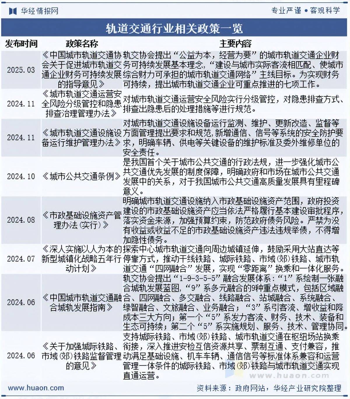 本文节选自华经财产研究院发布的《2025年中国轨道交通行业成长示状、相关政策、财产链、沉点企业及趋向,维保市场潜力「图」》,如需获取全文内容,可进入华经谍报网搜刮查看。