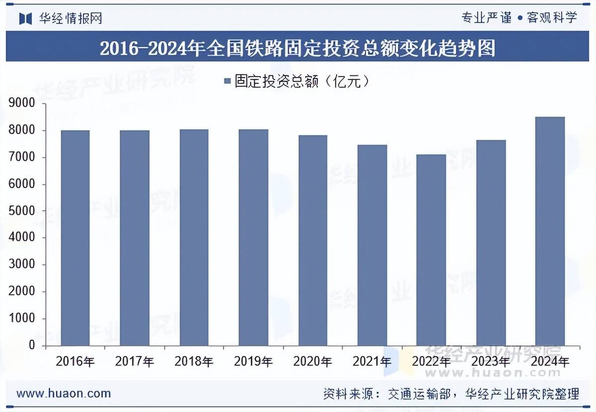 铁交通做为我国现代交通运输系统中次要交通运输体例,具有笼盖面广、平安性高档劣势,做为国度主要财产及严沉平易近生工程,铁交通扶植一曲由国度进行投资并遭到国度部分各类政策激励,行业一曲连结优良成长态势。据统计,2024年全国铁固定资产投资完成8506亿元,同比增加11。3%,创汗青新高。